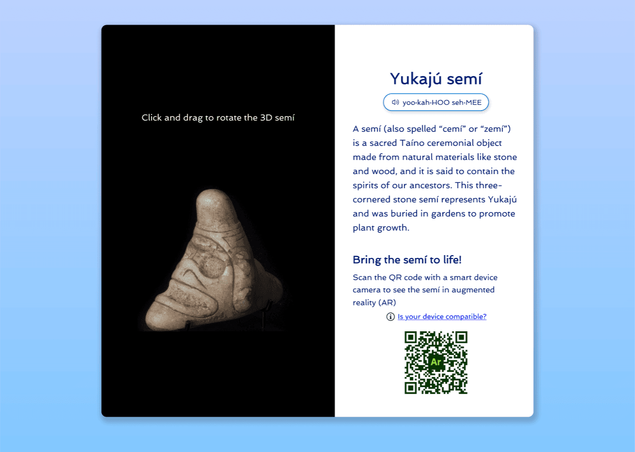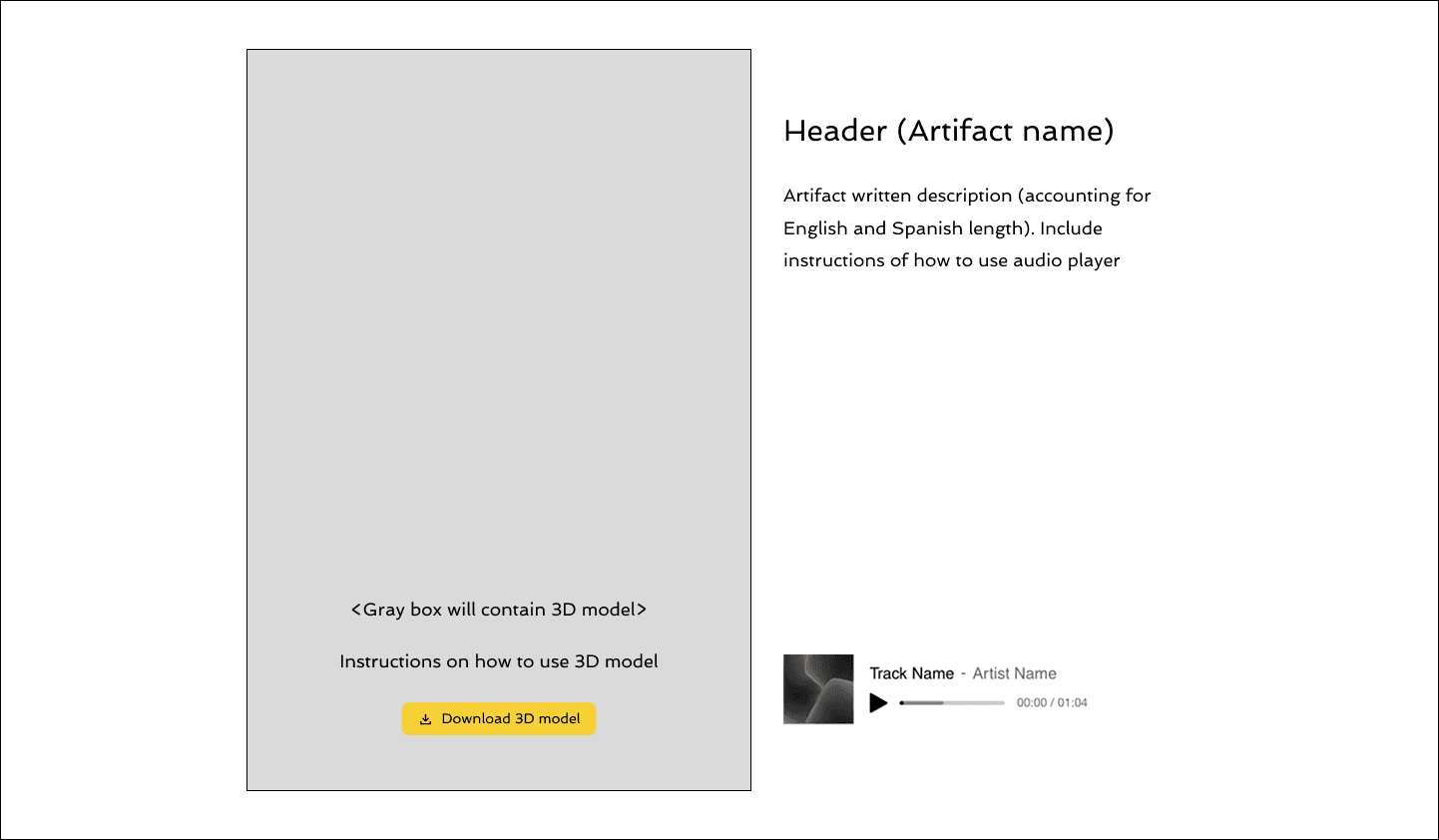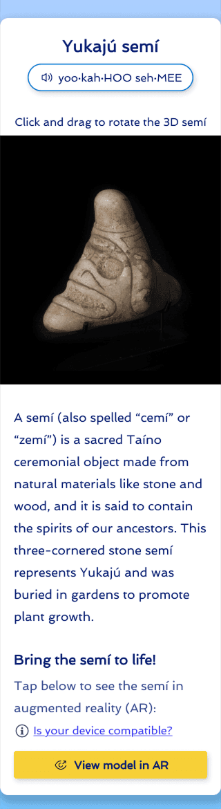 Key Outcomes: Redesigned & created template of 3D artifact page to include 3D art experience & AR (augmented reality) experience.