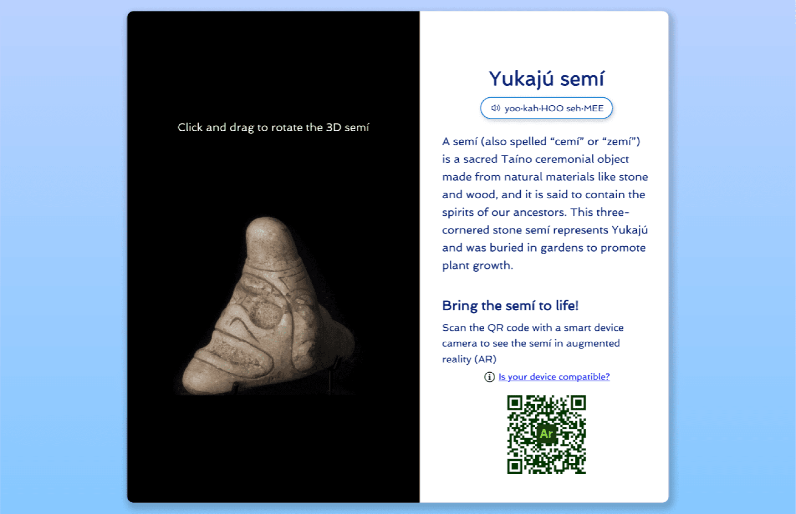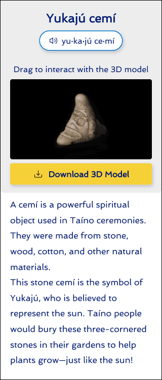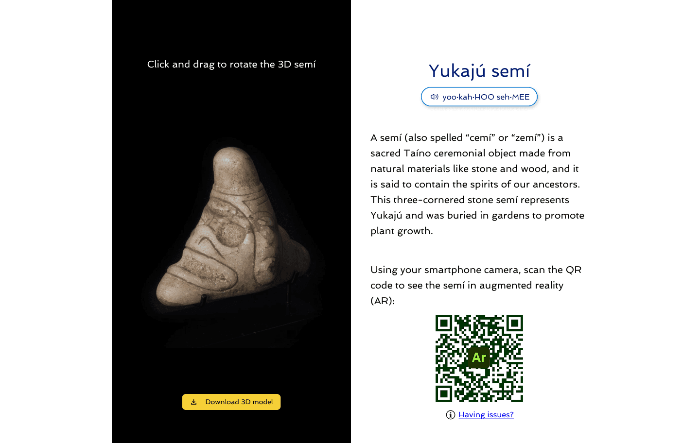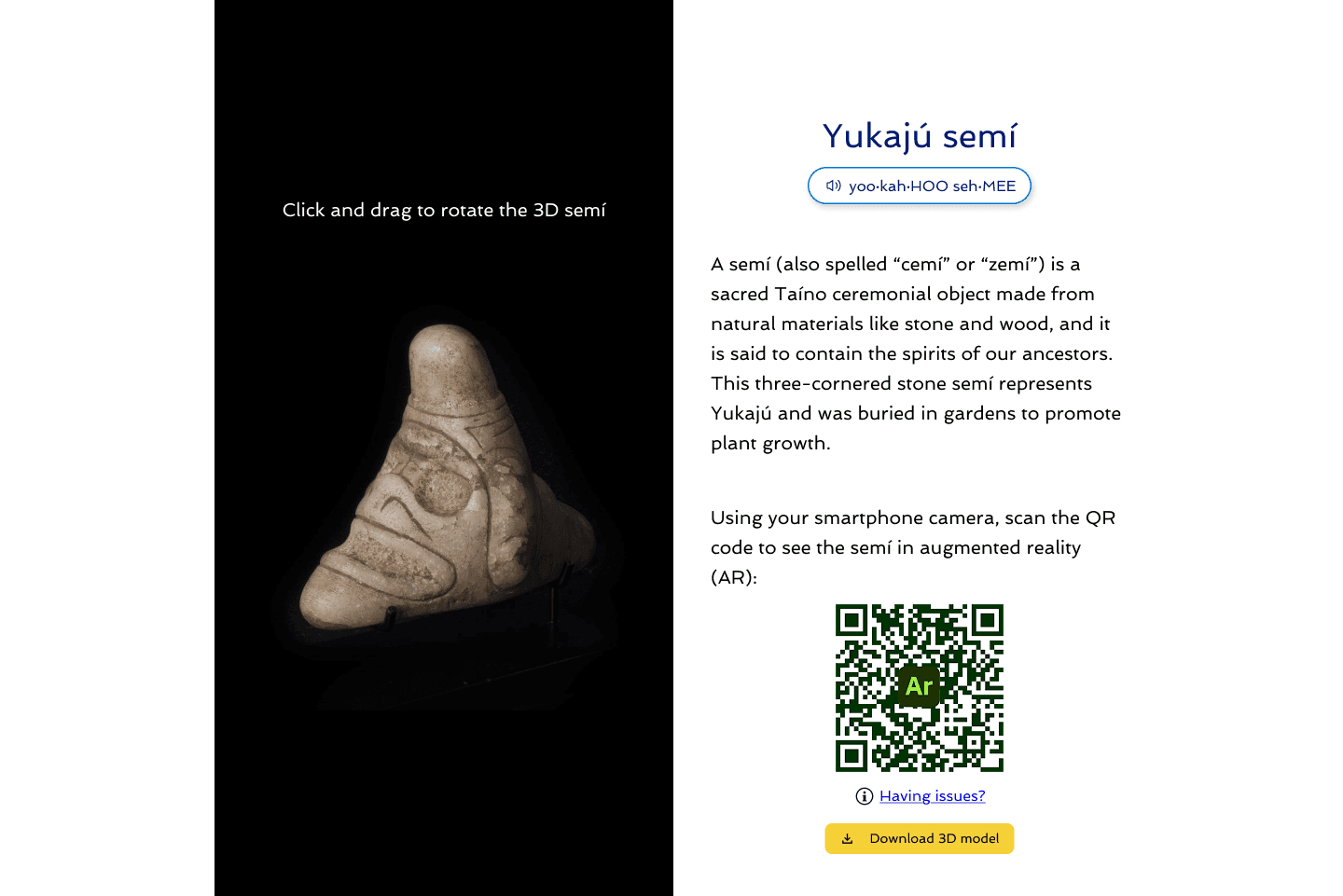 Key Outcomes: Redesigned & created template of 3D artifact page to include 3D art experience & AR (augmented reality) experience.