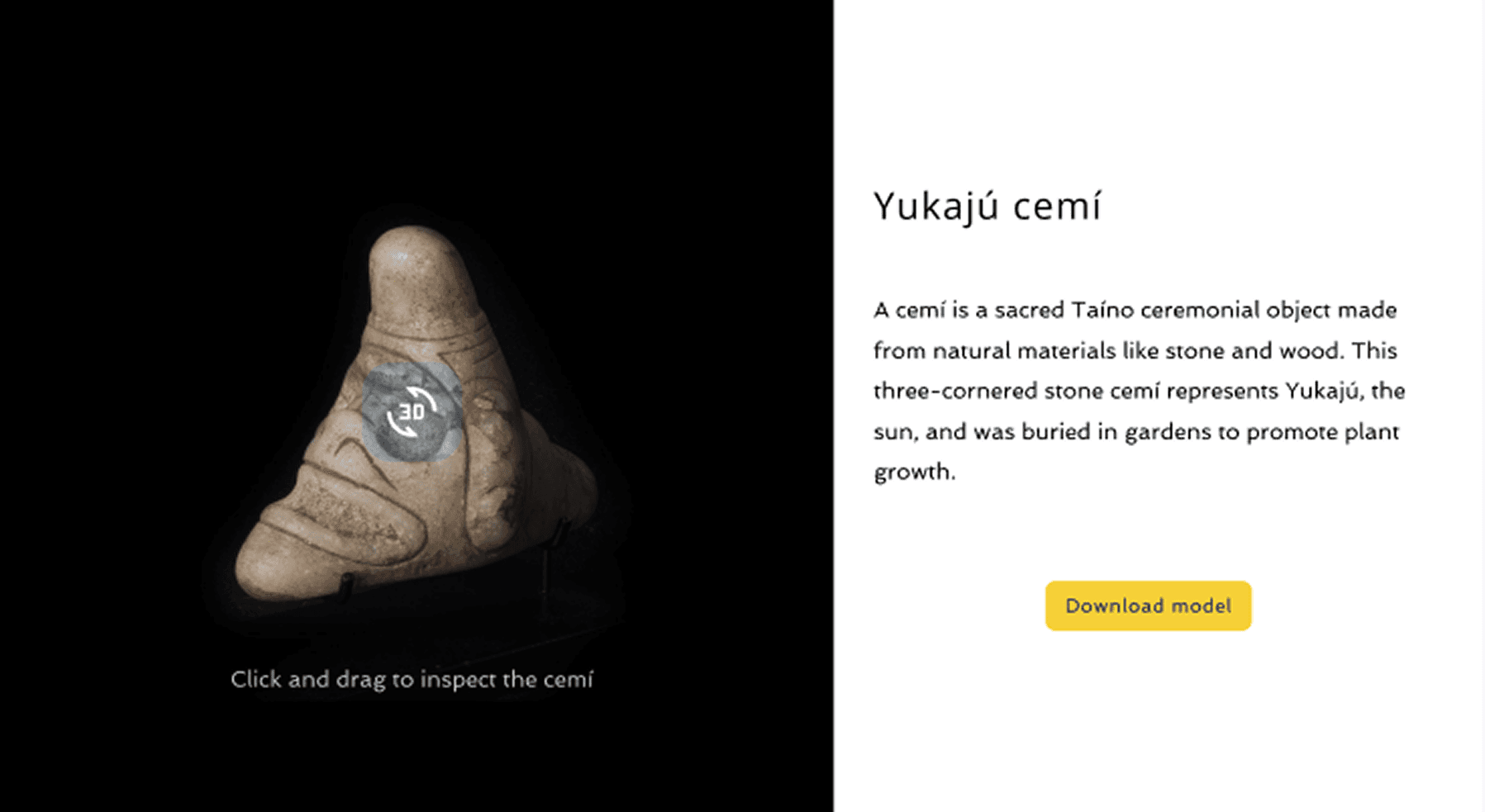 Download button placed outside & below 3D artifact area (gray box) in the same column to promote connection of the 2